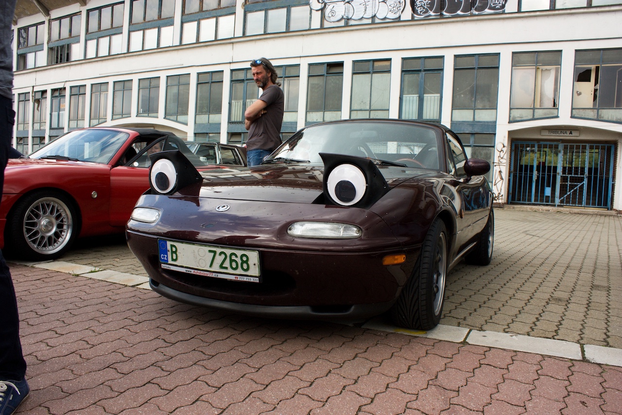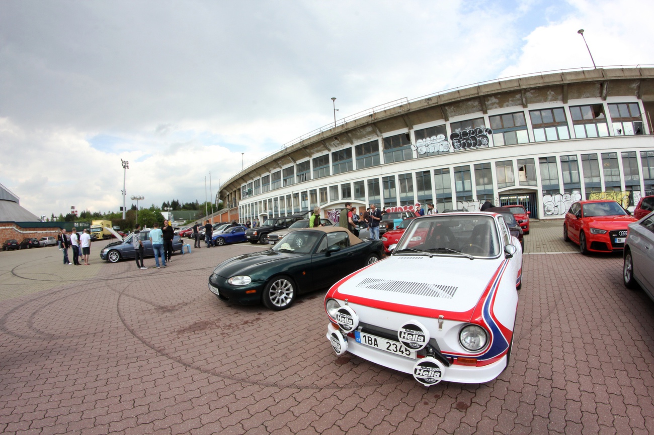 Moje srdce si ovšem získal exponát zcela odlišný. Víte, nikdy jsem nebyl zarytým milovníkem starých škodovek, a třeba takové erko mě nechávalo zcela chladným, stejně jako nepropadám nostalgickým záchvatům a steskům při pohledu na jejich aktuální ceny. Jakmile se ovšem na plácku před lužáneckým stadionem objevila nádherná Škoda 130RS, nemohl jsem od ní odtrhnout oči. Vůz po kompletní rekonstrukci vypadal jako nový a jeho pán ochotně a trpělivě zodpovídal všetečné otázky slintajících přihlížejících, zatímco vzadu stojící Miatě nezbylo, než výmluvně valit bulvy.