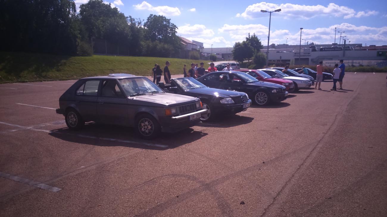 A na kterém jiném srazu může být vedle nablýskaných skvostů největší hvězdou šedivá krabice, která vypadá tak trochu jako nepovedený Favorit? Ano, máme na mysli Talbot/Chrysler/Plymouth Horizon (tuším, že tento kus byl původně Chrysler, ale byl majitelem následně přeznačen na Talbot) s naroubovaným motorem z Chrysleru LeBaron GTS, lehce vyladěným na skromných přibližně 300 koní… Ostatně o tomhle peklostroji si snad budete moci zanedlouho na Autíčkáři přečíst i velký článek.