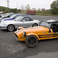 Vedle sebe tu stála starší, ale stále neprůstřelnou spolehlivostí oplývající Volva, překrásné Porsche 911, vzácná Alfa Romeo GTV Cup či nepřehlédnutelně oranžový Caterham. A k vidění toho bylo mnohem více. Vozy staršího data výroby byly zastoupeny krásnými Fordy, americkou ikonou El Camino a dalšími, modernu pro tentokrát zastupoval Honza Koubek s testovaným BMW i8 (stále mi není jasné, jak se do toho dokáže tak elegantně poskládat, já se do i8 jinak než po čtyřech a zcela prost důstojnosti nedostanu – poznámka šéfredaktora: Honza Koubek má asi tři metry na výšku) a nechyběla ani obligátní smečka Miat, zastoupeny byly dokonce všechny generace roadsteru, který je odpovědí na všechno. To je to kouzlo, pro které máme Kafe & Káry rádi. Každý je tu vítán, ať už přijede fantastickým Dodgem Hellcat či oprýskanou Lancií jako moje maličkost.