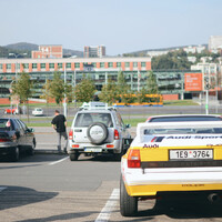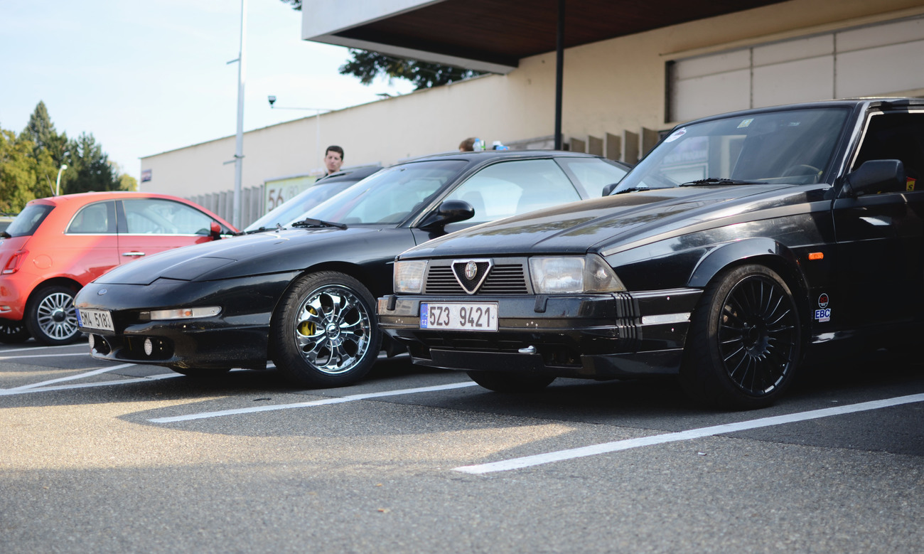 Kromě korálového Fiátku 500 na parkovišti nešlo přehlédnout Michalovu Alfu 75 s třílitrovým Bussem (viz naše fórum), 3 x vymazlené Audi A4 a jako perlu soboty bych označil Audi Quattro Coupe v originálních továrních barvách z 80. let.
