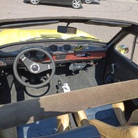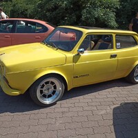 S Lexusem z druhé strany pak sousedí kanárkově žlutý Fiat 127, na kterém se mi už na první pohled něco nezdá. Má takovou podivnou siluetu. To proto, že mu někdo snížil střechu, jenže pak zjistil, že už se dovnitř nevleze, tak se jal střechu vyříznout a udělat ji stahovací. S trochu nadsázky by se to dalo říct, že to „zhotrodil“, v dobrém smyslu slova, tak nějak po evropsku. Sice v tom není eLeSo, ty se nám tu trochu shání trochu hůře než za velkou louží, ale jinak dobře odvedené práce, a přitom pořád punk. Například radiobezmapa je pod palubkou zavěšená jen na páru zipties. Žeru to. Sakra, tady jsem se měl informovat a vyjednávat test, proč mě to vždycky napadne až později?