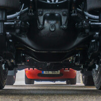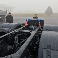 A jak to jezdí? No cítíte každý hrbol čtyřikrát místo dvakrát. Byl jsem překvapený tím, jak je auto civilizované, jak lehce se ovládá a co se týče brzd musím jen říct, že jsem se lekl jejich citlivosti a málem si kousl do volantu. Dvě přední řiditelné nápravy by měly znamenat, že si auto více "nadchází" do zatáčky a musíte více ve velkých zrcátkách hlídat, kam se vám dostaly zadní "tupláky", ale upřímně: Jako ryzí amatér jsem žádný velký rozdíl nepozoroval. Auto se řídí jako ono staré Atego, koukal jsem stejně často do zrcátek jako dopředu a nebál se využívat skoro plný rejd a vše bylo v pohodě. A navíc je krásné koukat na svět z takové výšky a vědět, že cokoli do vás narazí bude narážet tam někam dolů a bude stačit trošku zvednout nohy, že… ;-)