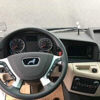 Ale k věci. První na řadě byla verze 8x4 čekající na sklápěcí nástavbu, takže s vysokým podvozkem a žlutými majáčky. Auto bylo naprosto nové a syrová převodovka potřebovala trošku šikovnosti. Také mi nepomohl fakt, že s malou a velkou řadou jsem nikdy nepracoval, znám jen půlené převody, takže mé počínání pozoroval zástupce majitele s mírným pobavením. Malá a velká řada? Půlky? Vysvětlím. Rozjíždíte se na malou dvojku, která je k sobě a dozadu. Pak přehodíte přepínač na "velkou půlku", vymáčknete spojku a máte tam velkou dva. Pak zase přepnete přepínač půlek a normálně přeřadíte na trojku.Tak pokračujete až do velké 4, pak přepnete jiný přepínač na velkou řadu a řadíte to, co by byla jednička, ale je nyní pětkou. Máte tedy celkem k dispozici 4 malé, 4 velké a to vše krát dva díky půlkám, takže 16 rychlostí. Ty samozřejmě nepotřebujete v momentě, kdy je osmikolka prázdná a bez nástavby. Velký dieselový šestiválec se popere s lehkým autem na jakýkoli stupeň plus mínus dva od toho správného. Půlky jsme neřešili vůbec.