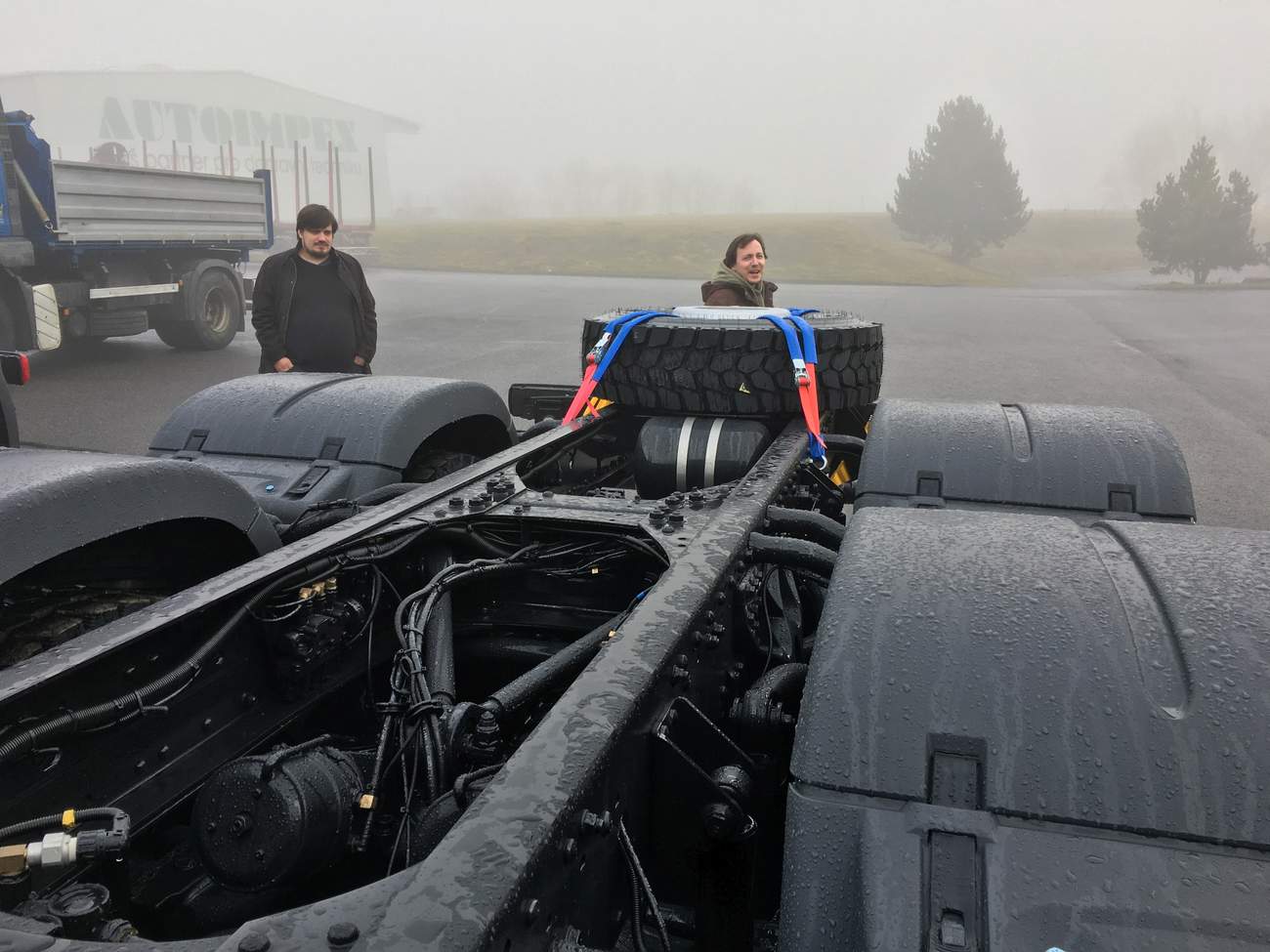Zbytek příjemné návštěvy v Autoimpexu trávíme detailnější prohlídkou strojů. Snažím se vstřebat všechny informace, které dostávám. Je vidět, že tu lidé náklaďáky skutečně žijí a že je ta práce baví. Sychravé počasí si však na všech přítomných začne vybírat svou daň a tak je čas se loučit. Ještě pár koleček redakční Rudou potvorou, alespoň malý dárek od Autíčkáře za možnost zažít řízení z trochu jiné perspektivy – a jede se domů. Tak díky a snad zase někdy!