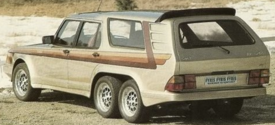 Obě zadní nápravy zůstaly nehnané, seriový turbomotor roztáčel přední kola. Interiér doznal značných změn, přibylo zde luxusní stereo, chladnička, televize a velká kožená křesla pro zadní pasažéry. Cena za takovou úpravu převyšovala hodnotu Saabu 900 Turbo hned čtyřikrát, o prodejní trhák se tak i vzhledem k diskutabilnímu vzhledu nejednalo. Celkem vznikly tři exempláře, do dnešních dnů se dochoval pravděpodobně jen jeden.