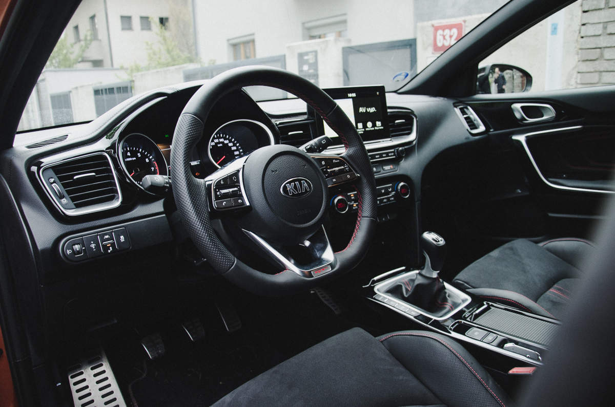 Den s oranžovou Kiou jsem si nakonec užil i já. Hned po nastartování mi udělal radost jadrný zvuk výfuku (tohle přesně chybí Peugeotu 308 GTi) a skvělé sedačky, které šikovně kombinují pohodlí a dostatek bočního vedení. Výkon je zcela dostačující a brzdy se dávkují jedna báseň, ale o tom už napsali dost ostatní. Já se tak zaměřím na interiér. Potěšilo mě zpracování všech ovladacích tlačítek, která mají příjemný povrch a přesný chod zakončený uspokojivým cvaknutím. V dosahu řidiče je dost odkladacích prostorů a poliček a celé to zkráta velmi dobře funguje jako auto pro každý den, které vás nebude ničím zásadním štvát.