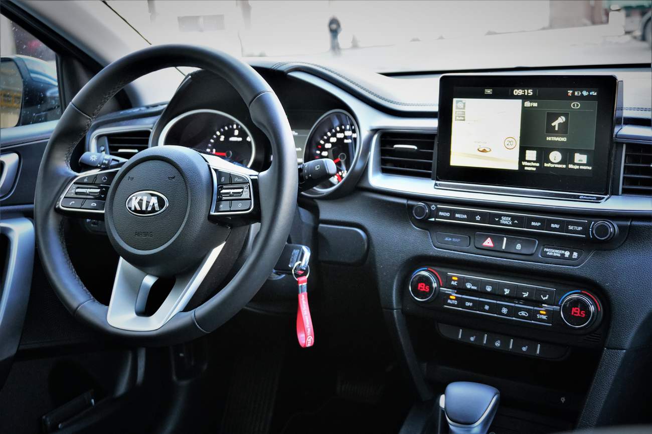 V interiéru je evropský rukopis znát asi nejvíce. Přístrojová deska a bezchybná ergonomie ovládacích prvků, to je přesně to, co máme v interiérech rádi. Nečekejte zběsilé výstřelky či kreace připomínající palubu vesmírné lodi. Tady opět hraje prim funkčnost. A také kvalita provedení. Jen co za sebou poprvé zabouchnete dveře, které zapadnou s takovým tím příjemným tlumeným žuchnutím, víte, že uvnitř se rozhodně nešetřilo. Klid a pohoda, to jsou hlavní charakteristické prvky Ceedu. Všechny ovládací prvky mají krásně vymezený chod a cítíte z nich takovou tu správnou bytelnost. Za přešlap tak považuji snad jen stropní panel s lampičkami, který je vyvedený v černém plastu. Ve světlé stropnici to vypadá jako pěst na oko. Centrálním bodem interiéru je rozměrný displej infotainmentu, který je vysunutý nad palubní desku. Má dobré rozlišení, což se hodí především pro parkovací kameru. Ovládání je řešeno dotykově, plusem je rychlý přístup k jednotlivým položkám pomocí fyzických tlačítek přímo pod ním. Uživatelské prostředí by zasloužilo modernější grafiku, nicméně potěší bezchybná konektivita, aplikace Android Auto funguje bez nejmenšího problému, což ani v dnešní době stále není úplná samozřejmost.