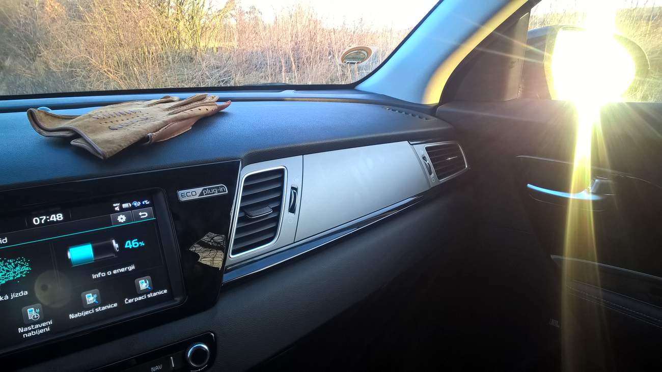 Jízda na elektřinu je plavná a tichá, auto se chová úplně stejně, jako kterýkoli konvenční vůz s automatem, což je ve městě jednoznačně výhoda. Stačí pustit brzdu a auto se samo sune kupředu. A protože se sune na elektřinu, můžete si v menu radiomapy nastavit, jak moc se má samo sunout kupředu. Hezký detail. V kombinovaném režimu si vůz sám volí způsob pohonu a pokud chcete, je tu i rádce, který vám na základě údajů z navigace poradí, kdy se vyplatí nešlapat na plyn a nechat auto ‘plachtit’. Bohužel tu není žádné tlačítko, které by Niru přikázalo vyrábět na okreskách elektřinu pro pozdější použití ve městě. I když… ale k tomu se ještě dostaneme.