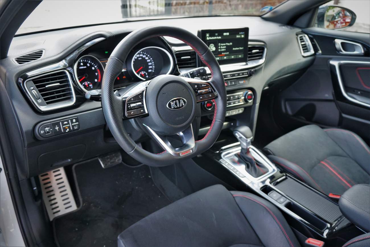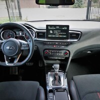 Škoda, že nastolenou laťku stylovosti nedokáže udržet také v interiéru. Ne, že by byl špatně zpracovaný nebo ergonomicky nedomyšlený, to vůbec ne. Ke zorientování stačí pár minut za volantem a dílenské zpracování je na úrovni, nikde nic nevrže ani neskřípe i přesto, že testovaný kousek měl poměrně krušný život (podíval se i na Nordschleife). Hlavní nedostatek vidím v tom, že je prakticky shodný s obyčejným Ceedem, to znamená zoufale nudný. Auto, jehož primárním úkolem je hra na city a emoce, by si zasloužilo větší odvaz v interiéru. Tady člověka potěší akorát kontrastní prošívání a povedené Recaro sedačky, které poskytují tělu vynikající podporu a zároveň jsou i dostatečně pohodlné na delší cestování. Výhodou sdíleného vnitřku je dostatek prostoru ve všech směrech. Dozadu se i přes lehce klesající záď vejde dospělý člověk a kufr s objemem 594 litrů postačí i náročnější rodince. Proti tomu nemám námitek. Jen bych v příští generaci uvítal maličko větší odlišení, Proceed by si jej jistě zasloužil.