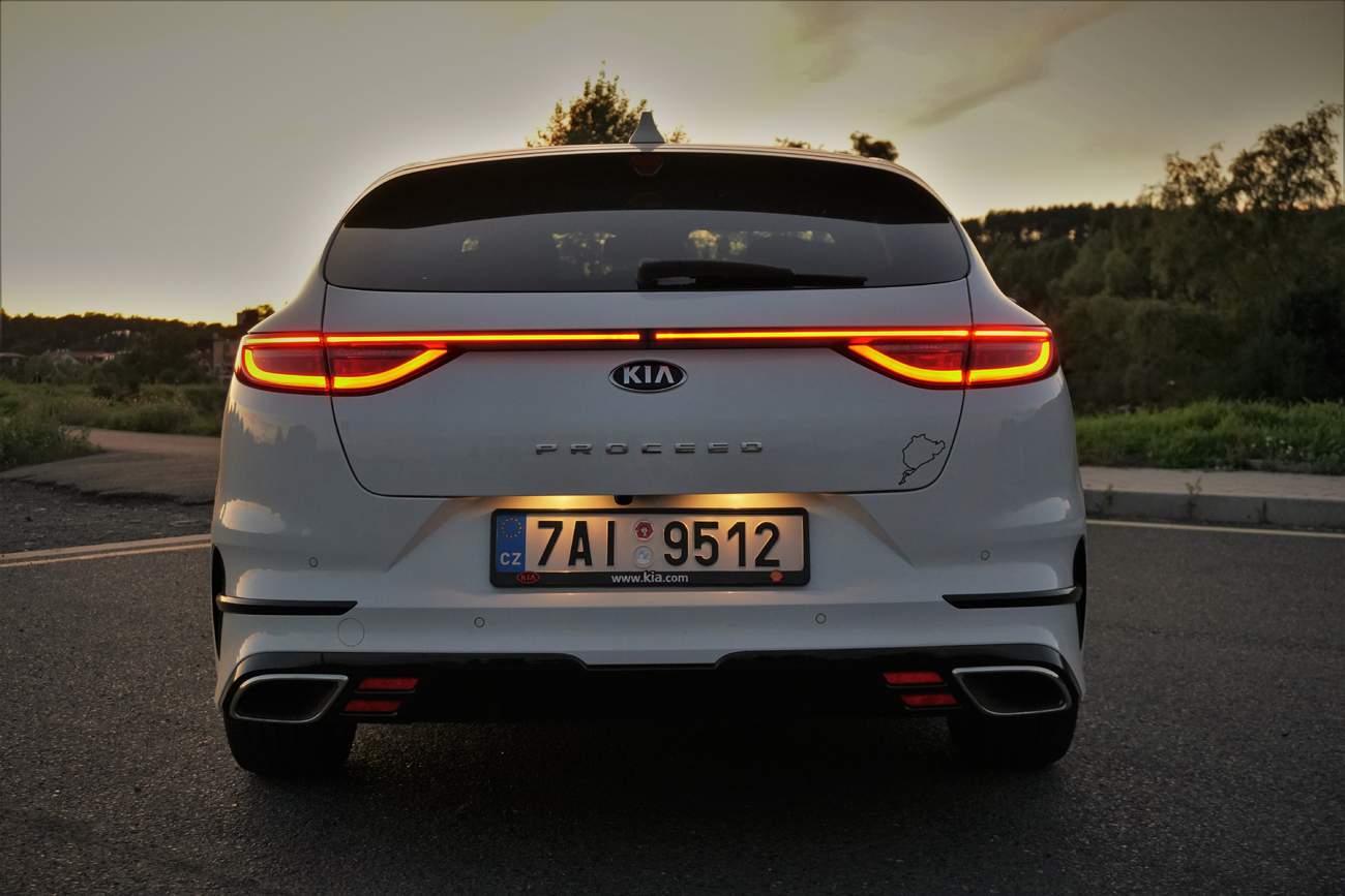 Pokud si udržujete přehled na automobilovém trhu, jistě si pamatujete, že auto s názvem Proceed už tady bylo. A to jak v první, tak i ve druhé generaci. Akorát se jednalo o třídvéřový hatchback. Jenže jak tak koukám, tady je něco jinak. Už nemá jen troje dveře a už vůbec to není hatchback. Kia totiž usoudila, že třídvéřové hatchbacky už netáhnou, a proto reinkarnovala Proceed do podoby šviháckého kombíku. A ne jen tak ledajakého. V marketingových materiálech se dočtete něco o karoserii shooting brake. No, o shooting brake mám trochu jiné představy, ale velkou dávku šarmu rozhodně Proceedu upřít nemohu. Je až s podivem, nakolik působí nový Proceed odlišně oproti usedlému SW. Zatímco na obyčejném kombíku na první dobrou vidíte, že byl zkonstruován za účelem maximální praktičnosti a velikosti zavazadlového prostoru, Proceed hraje na city. Splývavá záď dává najevo, že stěhování ledničky není jeho hlavním úkolem. Nástavce prahů a agresivněji tvarované nárazníky dodávají bílému kombíku šmrnc, stejně jako kontrastní červené lakování. Povedená je chromovaná ploutvička na C sloupku a vůbec nejzajímavějším prvkem jsou jednolité zadní svítilny, které především v noci vytvářejí nezaměnitelný světlený podpis. Jsou to právě takové detaily, které odlišují Proceed od běžné šedě na silnici, ale přestože jednotlivě mohou působit trochu kýčovitě, jako celek to hraje moc hezky a výsledek je překvapivě povedený. Proceed rozhodně patří mezi nejhezčí kompaktní kombíky dneška a je jenom škoda, že Kia nepoužila bezrámová okna, která by se k takovému vozu skvěle hodila. V otázce vnějšího designu sbírá Proceed plusové body.