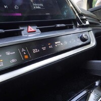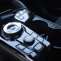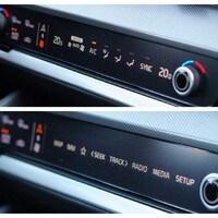 Moc se mi líbí ovladací segment klimatizace a rádia – je to sestava dotykových tlačítek a dvou otáčedel, jejíž funkci lze měnit kliknutím na přepínač. V “klimatizačním módu” se kolečky nastavuje teplota a tlačítka směrují proud vzduchu, zapínají klimu a podobně, v “multimediálním módu” se pak otáčením nastavuje hlasitost a ladí frekvence a tlačítka přepínají mezi rádiem, navigací, nastavením a podobně. Výsledkem je možnost rozumně ovládat potřebné funkce poslepu při zachování minimalistického designového směru. Dobrý nápad i provedení, řekl bych.