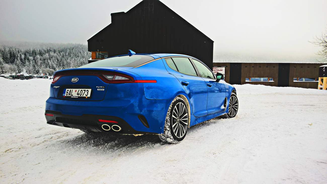Značka u silnice sice hlásá, že silnice je udržovaná pluhováním, realita je však jiná – sníh je na ledovém podkladu jen udusáván projíždějícími auty, nic víc. Otevírá se přede mnou hezká vlásenka, nikde nikdo, jen ve zpětném zrcátku se mi usadilo černé ambiciózní Audi. Pedál plynu se hrubě boří do podlahy a Stinger vyráží vpřed. Pravá zatáčka střídá levou, silně utahující, zkusmo prošlápnu brzdy, auto je poslušné, má důvěra v něj roste každým metrem. Pod plynem se ženu vstříc další sérii zatáček, neutralita chování Stingeru je dechberoucí. Reakce na řízení zcela popírá povahu povrchu, po kterém se pohybuji. Kolečko jízdních režimů pootáčím do polohy Sport+, varovná kontrolka mi hlásí, že jsem právě vypnul protiprokluz. Dlouhým stiskem tlačítka propouším i zbytek elekronických pomocníků. V tu chvíli mi hlavou probleskne vzpomínka a ony pány nasazující o kilometr zpět na své škodovky sněhové řetězy. Co to tu proboha dělám?