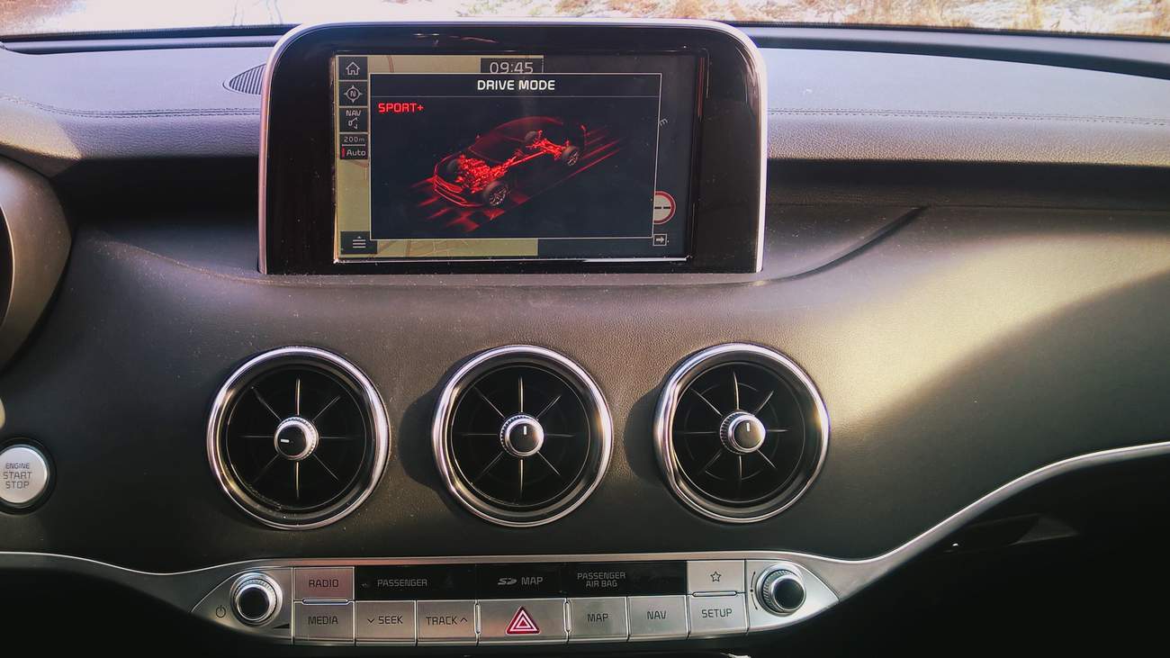 Jakmile se však vůz vymotá z garáží, je radost jej řídit. Stinger polyká kilometry dálnic v rychlém tempu. A protože je ‘můj’ Stinger vybaven pohonem všech kol, vyrážím severu vstříc. Na dálnici je auto ve svém živlu. Na palubě vládne ticho a klid, zatímco se modrá střela řítí levým pruhem. Adaptivní tempomat a systém pro udržování v jízdním pruhu dělají z dlouhých dálničních přesunů činnost snadnou a příjemně relaxační.