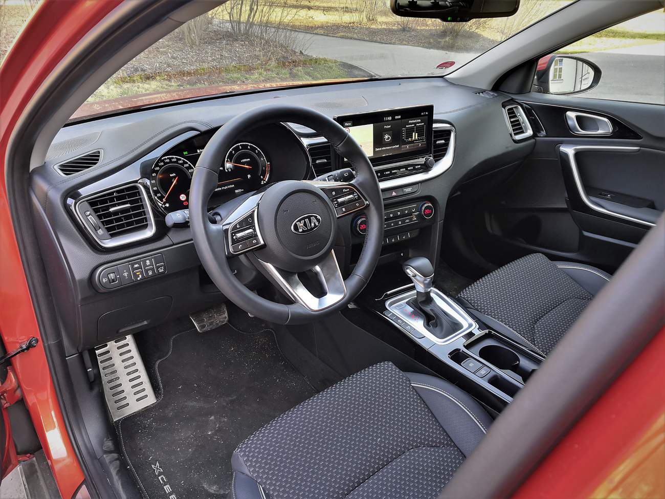 Na rozdíl od mírně extravagantního zevnějšku je interiér prakticky beze změny převzatý z běžného Ceeda. Což přináší dvě věci. Za prvé; je kvalitně sestavený. Nikde nevrže, plasty nevyvolávají dojem, že jsou tvořeny z recyklovaných PET flašek a ergonomicky je v naprostém pořádku. Na druhou stranu je však také zoufale nudný. Padesát odstínů černé (dá se řešit žlutým interiérovým paketem) působí lehce ponurým dojmem, což u modelu, který je prezentovaný jako funky auto, poněkud zamrzí. Ozvláštnění přináší jen digitální přístrojový štít, který má opravdu skvělé rozlišení (a zasloužil by rozhodně větší možnosti individualizace) a také o něco větší obrazovka infotainmentu, která dorazila s modelovým rokem 2020. Prostornost interiéru je zcela v pořádku a subjektivně (sorry, s metrem jsem vnitřek vážně neprolézal, na to se mám moc rád) se mi zdá, že konstruktéři zvládli na stejném rozvoru vykouzlit o něco větší prostor pro posádku, než je tomu u výchozího modelu. Kde se přidávalo zcela objektivně, je zavazadlový prostor, který dostal 31 litrů navíc a výsledná hodnota 426 litrů by mohla v pohodě postačit i méně náročné rodině.