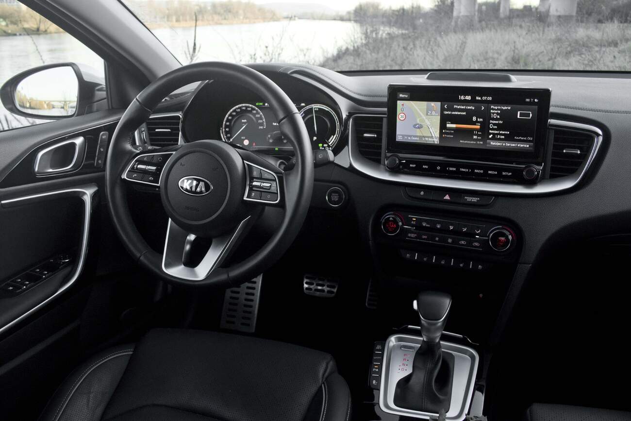 Uvnitř najdeme uspořádání, které nepřekvapí absolutně ničím. Ze všech asijských automobilů působí právě Kia nejvíc evropsky, skoro bych se nebála říct německy. Konzervativní tvary – volant je kulatý, tlačítka hranatá – doplňuje pragmatické rozmístění ovládacích prvků a ergonomie, jíž nemám co vytknout na první, druhý ani třetí pohled. Když se trochu rozkoukám, vidím snad všechnu myslitelnou výbavu od vyhřívaného volantu, přes odvětrávané přední sedačky (a vyhřívané zadní) a nafukovací bederní ‚polštářek‘ až po adaptivní tempomat a parkovací kameru s pěkným rozlišením. Ale tohle všechno už jsme viděli i na předchozích spalovacích variantách. Teď nás asi bude nejvíc zajímat jízda a obecně soužití s nabíjecím hybridem.
