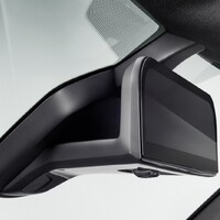 Dost podobná situace panuje i uvnitř vozu. Klasické vnitřní zpětné zrcátko? Ale kdeže, jeho náhrada je opět kamera s vysokým rozlišením, tentokrát schovaná ve vrchní hraně zadního okna. A tam kde dříve bylo zpětné zrcátko, nachází se nyní v interiéru rozměrný displej, na kterém jsou pospojovány obrazy všech tří kamer.