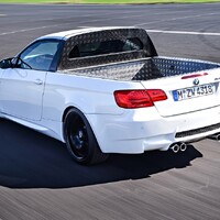 Nepůjdeme chronologicky, místo toho se raději podíváme na nástupce třicítkového pickupu, model E90 M3. Původní pickup si zaměstnanci oblíbili a tak si dalšího pomocníka vyrobili tentokrát z kabrioletu E90. Ten už se na trhu objevil i jako M3, karoserie tedy vypadá jako skutečná M3.