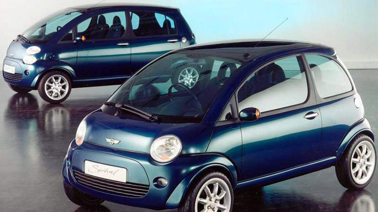 Pak se na jaře v Ženevě představily další dva koncepty Spiritual a Spiritual Too, na pohled úplně jiná auta. Leč první dojem může mást. Šlo o taková miniaturní MPV, ne o moc větší než původní Mini. Zde je třeba si uvědomit, že je dělily téměř čtyři dekády, ve kterých se auta plíživě, ale jistě zvětšovala. Přitom podle svědků nabízely podobný vnitřní prostor, jako soudobé BMW řady 7. I Spiritualy měly stejnou koncepci, podobnou třeba Smartu, tedy motor vzadu-uprostřed (čti pod zadními sedadly) a pohon zadních kol. Tohle už byla tříválcová osmistovka s výkonem 60 koní, tedy motor Rover K-series který používalo MGF, ale obraný o válec. Auto se mělo začít vyrábět roku 2001, a to v obou verzích. Nakonec to ale dopadlo úplně jinak. Ve stejném roce se sériová verze skutečně představila, s koncepty z devadesátých let však neměla společného skoro nic.