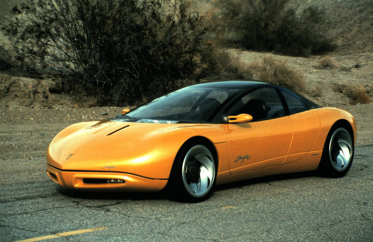 Tohle auto na našich silnicích potkáte jen těžko, není k tomu žádný objektivní důvod. Ale nešlo ho sem nedat. Ukazuje, jak obrovský rozdíl může být mezi konceptem „auta snů“ a stejnojmenným modelem. Roku 1990 se představil poměrně kompaktní, o to však efektnější koncept auta pro mladé, Pontiac Sunfire. Studie měla u soudobých amerických konceptů tak oblíbené hladké aerodynamické tvary a přestože vypadala skoro jako kupé, byla „čtyřdveřová“. Proč ty uvozovky? Dvojici předních dveří doplňovala další zhruba poloviční, otevíraná opačným směrem proti směru jízdy, umožňující pohodlnější přístup k zadním sedačkám. Ve své době šlo o takřka revoluční novinku, kterou pak začaly používat spíše pikapy a zřejmě jediné podobné auto Mazda RX-8 o 13 let později. Snad jsem tedy nezapomněl na něco podobného z rané automobilové historie. Studie Sunfire vypadala spíš jako kupé 2+2, čemž odpovídal i zamýšlený název budoucího sériového potomka Sunfire 2+2 a také futuristický interiér, ve kterém byly věci jako ovládání spousty funkcí na volantu, telefon a dokonce i HUD displej, promítající údaje na čelní sklo. V roce 1990… Počítalo se také s otevřenou verzí. A dál?