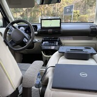 Další skvělá věc jsou do roviny sklápěcí opěradla, a to u všech čtyř sedaček. V autě se tedy dá klidně vyspat, když si přes sklopená sedadla hodíte matraci. Taky si můžete sednout dozadu, z přední sedačky udělat pracovní stoleček – a tady se vám bude hodit další vychytávka, totiž 230V zásuvka přímo v kabině. Zapojit notebook a do práce!