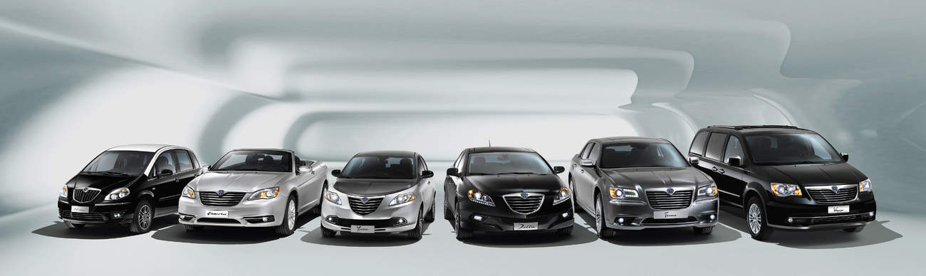 Kompletní portfolio Lancie v roce 2011: Musa, Flavia, Ypsilon, Delta, Thema a Voyager