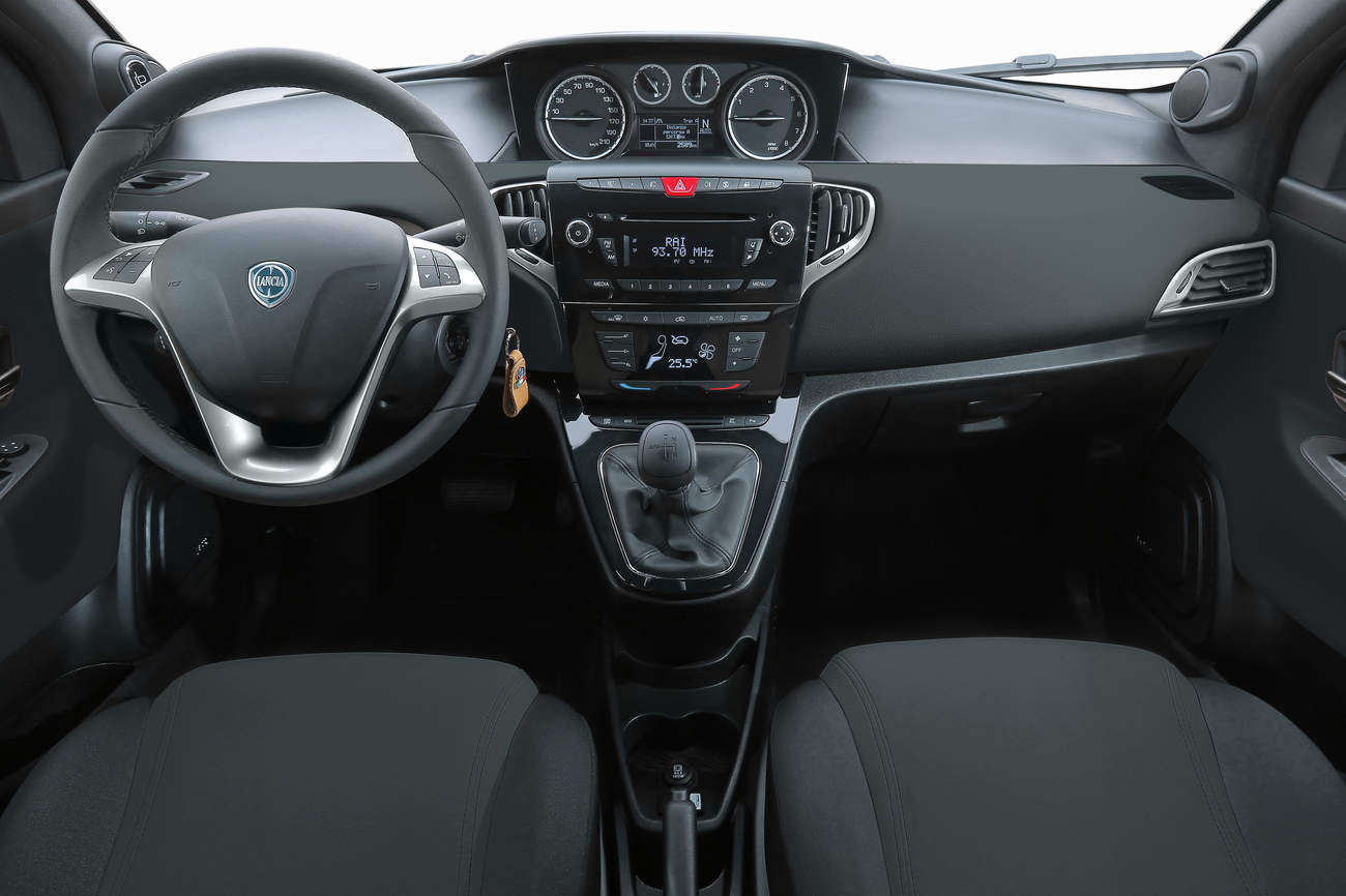 Interiér s centrálně umístěnými budíky navázal na tradici předchozích generací. Základní uspořádání palubní desky, stejně jako vyvýšená pozice sedadel, nemohly, a nejspíš ani nechtěly, maskovat příbuznost s Fiaty Panda a 500. Trochu ustoupil funky styl a kvalita materiálů, pro předchozí Ypsilony typické rysy. Ale je to auto z doby těsně pokrizové, takže se to dalo pochopit.