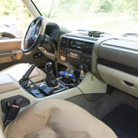 Ano, dvacet let je dlouhá doba. Třeba v oblasti ergonomie se dá udělat slušný skok. Staré Land Rovery v této disciplíně zrovna nevynikají, to si přiznejme. Vezměte si třeba ten parádní středový tunel, který provází Disca od samého počátku a jehož šíře dává celému interiéru dojem mimořádné prostornosti. Uprostřed se nejen netlučete lokty se spolujezdcem, ale můžete si třeba i zahrát společenskou hru. Jenže ve dvojce za něj platíte tím, že jste v podstatě připlácnutí na dveře. Není to tak zlé jako v Defenderu, že byste si museli vystrčil loket ven, ale žádné rozvalování nečekejte (a když uhodí vedro, je ten loket venku vcelku vítaná pozice). I když by se zdálo, že něco takového nelze, jsou pedály vůči sedadlu ještě vyosené – doleva! Než si na to zvyknete, párkrát si nejspíš dupnete na brzdu místo na spojku. Volant má tak divný tvar, že vám občas přijde, že ho otočili vzhůru nohama. Cupholdery designoval někdo, kdo v životě neviděl láhev ani kelímek. A páčky blinkrů a stěračů jsou umístěné proklatě nízko. Je to prostě celé takové… specifické.