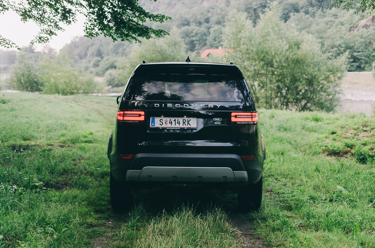 Nerad se pouštím do hodnocení vzhledu automobilů a designu obecně, sám si vystačím se škálou líbí-nelíbí, u Discovery se však krátkému shrnutí nevyhneme. Nejčastější zaznamenané výtky směřovaly k nahrazení hran oblými tvary, hned následované posteskem nad údajně opticky příliš těžkými zadními partiemi. Vyhlazený, zaoblený vzhled byl hodnocen jako málo chlapácký a příliš vyměklý. To mě nutí k pousmání a marnému přemítání, co si asi dotyčný stěžoval chtěl autem kompenzovat. Podle mého názoru funguje současný designový jazyk Land Roveru výborně i v případě Discovery a zatímco příslušnost ke značce zůstává jasná, jednotlivé modely od sebe dobře rozeznáte. V případě Discovery také díky oné mohutné zadní části a odstupňované střeše. Všechna dosavadní Discovery byla zezadu a z profilu dobře rozpoznatelná, což stále platí, a to i přes změnu orientace zadních svítilen ze svislé na vodorovnou. Dle mého soudu působí Discovery stále solidně a prostorně a v jeho vzhledu snadno rozpoznáte mnoho odkazů na předchozí generace. Náš testovaný exemplář byl navíc oděn v černém laku Santorini Black, což jej mírně opticky zmenšovalo, nenechte se ale zmást, Discovery je nadále velké auto. Dlouhé je bezmála pět metrů, na šířku naměříte mírně přes dva metry, a jen opravdový dlouhán se autu podívá na střechu. Případná montáž střešního příslušenství by s nejvyšší pravděpodobností vyžadovala pomoc menšího lešení.