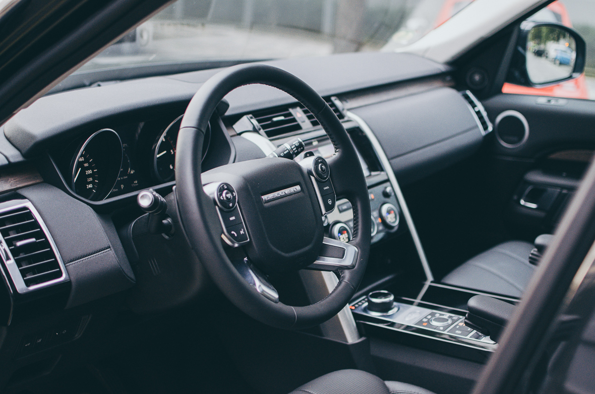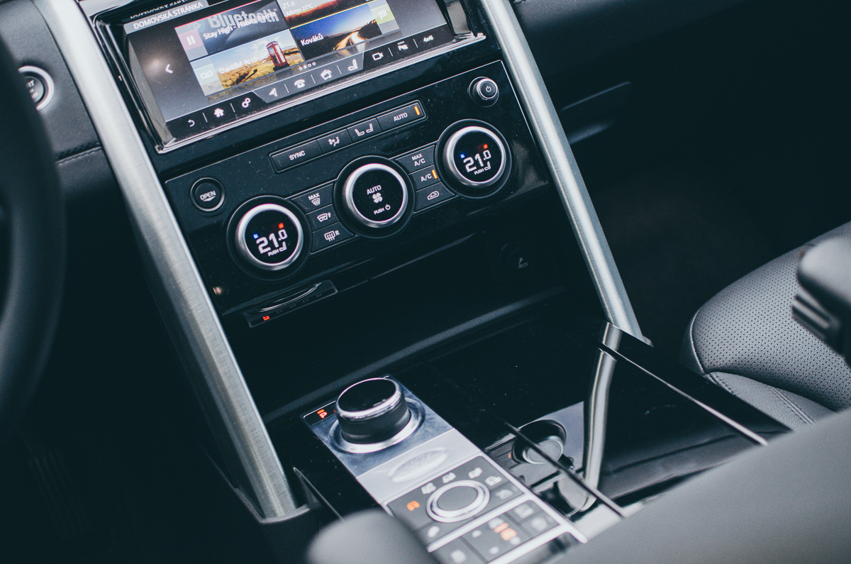 Jestliže vnější vzhled Discovery může vyvolávat vášnivé diskuze mezi staromilci a příznivci moderního stylingu, interiér žádné pochyby nepřipouští. Ten tam je poněkud komplikovaný a nesourodý vzhled palubní desky generací předchozích, novinka dovnitř pouští něco z velkorysého stylu většího Range Roveru, a s potěchou kvituji také výběr materiálů a zpracování. Potěší přítomnost pravého dřeva, pokud si jej objednáte, jinak můžete mít dekory například hliníkové. Velmi příjemným materiálem je syntetický povrch palubní desky, loketní opěrky a dveří. Materiál, který na dotek připomíná měkkou softshellovou tkaninu je asi tím nejzajímavějším nepřírodním povrchem, co jsem za poslední roky v autech viděl. Snad jediná věc, kterou si nejsem příliš jistý, jsou kožená sedadla, ale v nižších úrovních výbavy můžete dostat sedačky textilní, a pokud musíte mít kůži, určitě si připlaťte za jejich chlazení.