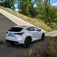 Přes vzkvétající obavy se mě zmocňuje nálada okolí. Stojím v úzké uličce na Malvazinkách nedaleko Smíchova, kolem šumí stromy a do zátylku hřeje usínající slunce. Nejraději bych si pod zelenými korunami dal oblíbené belgické pšeničné pivo a strávil večer rozmlouváním s přáteli či čtením něčeho z pera Lukjaněnka či Pratchetta. Jenže přede mnou je 150 km v neznámém voze plném nejnovější elektroniky a jestli mám být doma do setmění, měl bych okamžitě vyrazit. První dojem je skvělý. Pečlivě zpracovaný a kvalitní kůží obšitý interiér působí jako krbem osvětlená pracovna šlechtického sídla. Ona zvláštní kombinace útulnosti i velkorysého prostoru je umocněna vysoko položenou spodní linkou zasklení. Ve většině automobilů s nízkými okny se cítím jako v tanku, ale na palubě Lexusu se mi vybavují spíše šeré zámecké pracovny. To bude tou karamelovou kůží. Nebo sedadly. Na první posezení totiž obejmou, jako baronův ušák. Znáte ta klasická kožená křesla chesterfield, co vypadají tak strašně pohodlně? Takhle nějak si představuji, že se v nich budu cítit. Vyšší posaz se k pohodlně sochanému tvaru dokonale hodí, není to přeci lenoška, nýbrž trůn se vším všudy. Dokonce i područky to má. Řadím D a.. nic? Aha, on je to vlastně hybrid. Za naprostého ticha se rozjíždím do západu slunce zvětšeného chvějícím se vzduchem. Ani nevím, jak jsem se dostal domů. Vlastně jsem si ani nevšiml že se setmělo a že jsem si na cestu zapomněl pustit hudbu. V režimu ‚jsem unavený a chci prostě domů' funguje NX výborně. Velkou zásluhu na tom má kvalitně zpracovaný interiér, předvídatelné chování, pohodlný podvozek a především naprosto dokonalé odhlučnění.