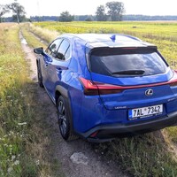 Testovaný vůz je vybavený systémem e-Four, pohyb po rozbahněné polní cestě, nebo zasněžené silnici tak není problém. Mimo zpevněné cesty se s UX se asi bude vydávat málokdo. Konec konců, i podvozek je nastavený dost “silničně”. Je poměrně tvrdý a jistý, rozbité silnice s množstvím za sebou jdoucích děr se mu moc nelíbí, ale v zatáčkách drží skvěle a zbytečně se nenaklání. Něco jako “komunikativní řízení” a podobné sportovně založená klišé by u luxusního městského SUV asi nikdo nečekal, takže jen pro pořádek – nejsou tu. Všechno je přeposilované, aby to šlo hezky lehce a aby byla posádka co nejlépe izolována od toho nehostinného světa tam venku. Naštěstí.