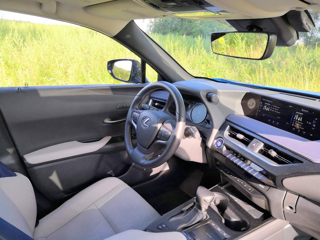 No, konec filozofování, pojďme raději za volant. Testovaný vůz je vybaven hybridním ústrojím, o pohon se tak stará řadový čtyřválec a elektromotor o celkovém výkonu 178 koní. To sice nevypadá jako vysoká hodnota, dynamika v městských rychlostech ale vozu díky elektromotoru rozhodně nechybí. Trochu horší je to na dálnici. Při rychlostech kolem 150 km/h už je motor i přes slušné odhlučnění dost slyšet, planetová eCVT převodovka ho totiž nechává točit dost vysoko. Navíc v tomto případě samozřejmě roste i spotřeba. Při rychlejších dálkových přesunech hravě překročí deset litrů na sto kilometrů. Revírem UX je tak spíše město, kde díky šikovnému využívání rekuperace a elektromotoru není problém cestovat za půlku.