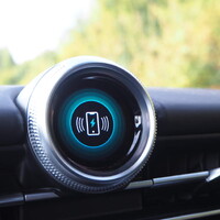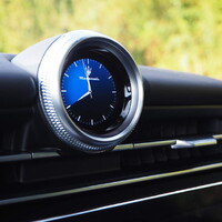 Ještě, než téma radiomapy opustím úplně, musím zmínit ještě dvojici displejů, kterou jsem v úvodu opomenul. Je tu zcela nový rozměrný head-up displej, zobrazující veškeré důležité informace včetně mapy, a dále jsou tu hodiny. Ano, ty hodiny, co vyvolaly paradoxně snad nejvíce kontroverzí na celém autě. Místo klasických ručičkových hodin umístili tvůrci do Grecale kruhový displej. Ten zobrazuje pochopitelně primárně hodiny, ale umí toho daleko víc. Můžete tu mít třeba kompas, G-metr nebo zobrazení polohy pedálů plynu a brzdy. A zároveň vás prostřednictvím tohoto drobného displeje auto informuje například o zahájení nabíjení vašeho telefonu bezdrátovou nabíječkou. Pro někoho je to možná svatokrádež, já ale přesně takové věci považuji za ideální implementaci moderních technologií při zachování tradičních prvků.