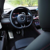 Ale teď už pojďme jezdit. Jak už jsem zmínil v úvodu, k testu jsme získali aktuálně vrcholné provedení Trofeo s šestiválcem Nettuno. Pod ním jsou v nabídce ještě dvě verze mildhybridního pohonu a v přípravě je i plně elektrické provedení. Trofeo je ale verze pro ty, kdo chtějí tradiční Maserati. Žádné elektromotory, žádné baterie, jen brutální síla zážehového motoru s dvojitým přeplňováním. Už po nastartování o sobě dává šestiválec jasně vědět, přepnutím do jednoho ze sportovních režimů se pak dunění z výfuků ještě přiostří. Příjemná je možnost ovládat tuhost tlumičů samostatně, rychlou odezvu na plyn a ostřejší řízení si tak můžete užít i bez drncání.
