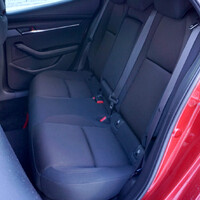 Naštěstí interiér, alespoň vepředu, nedělá mezi sedanem a hatchbackem žádné rozdíly. A musím říct, už když jsem v trojce seděl poprvé, tak jsem se těšil až si ho někdy budu mít možnost více vyzkoušet. Oproti předchozí generaci, jejíž sedan (který je mimochodem ošklivější než hatchback) mě okouzlil několik let zpět, je tohle skok ne o generaci, ale snad o dvě. Mazda se zase vydala jinačí cestou než ostatní výrobci. Snad by se dalo říct, že cestou střídmosti. Interiéru nevévodí gargantuovský displej infotainmentu, naopak je na poměry spíše menší a je roztažen do šířky. Navíc je umístěn skoro až u čelního skla a není dotykový… Skandál? Ale vůbec ne. Toto řešení je mi velice sympatické. Ovládání kolečkem je už osvědčené… Celé to působí minimalisticky, společně s nízkým posezem máte pocit, že tady je svět ještě v pořádku a správná řidičská poloha ještě není výsadou jen sportovních vozů. Zmínku si ještě zaslouží odkládací prostory. Málokdy se mi stává, že bych měl na výběr tolik schránek, že bych začal hledat, kam jsem si odložil klíče… Zepředu interiéru se ale nevyhnutelně musíme dostat i dozadu. A tady narážíme na problém s velkým C-sloupkem a snad i daní za to, že vepředu je místa skoro až moc. Na zadních sedačkách není zrovna mnoho prostoru a díky velkému sloupku je zde i docela malé okénko. A tak jsou zadní sedačky spíše kobkou. No jo, další argument pro sedan.