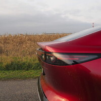 Ani druhý dojem není vůbec špatný. Při bližším zkoumání Mazda 6e odhaluje jeden povedený detail za druhým. O efektní decentně prosvětlené masce jsme již mluvili, máme tu ale i bezrámové dveře a záď dokonce zdobí elektricky výsuvný spoiler. Ten je mimochodem integrován vážně skvěle, takže ve složeném stavu nemá nikdo šanci poznat, že tam vůbec je. Korunu celkovému dojmu potom přidává lak Soul Red Crystal. Po stránce vzhledu tu tak máme další Mazdu, za kterou se na parkovišti pokaždé ohlédnete.