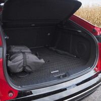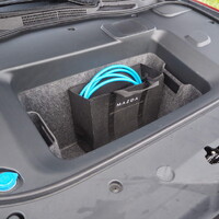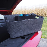 Ještě než se vydáme na projížďku, měl bych zmínit praktickou stránku věci. Tady totiž Mazda 6e přináší samé dobré zprávy. V kabině je místa víc než dost pro všechny cestující. Objemný je i zavazadlový prostor, Mazda navíc přidala i druhý zavazadelník vpředu. I ten má solidní objem, navíc však obsahuje praktickou přepravku – celý přední „frunk“ si tak vlastně můžete vzít s sebou domů. Chytrý nápad.