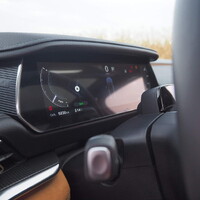 V kontrastu s centrálním displejem je tu přístrojový štít. Je hezký, přehledný a obsáhlý, o tom žádná, ale veškerá jeho konfigurovatelnost spočívá v malé oblasti, kde můžu grafiku toku energie vyměnit za ukazatel okamžité či dlouhodobé spotřeby. A to je všechno, jinak tu nenastavím nic. Na druhou stranu – co bych tu chtěl nastavovat, zobrazení je hezké a přehledné.