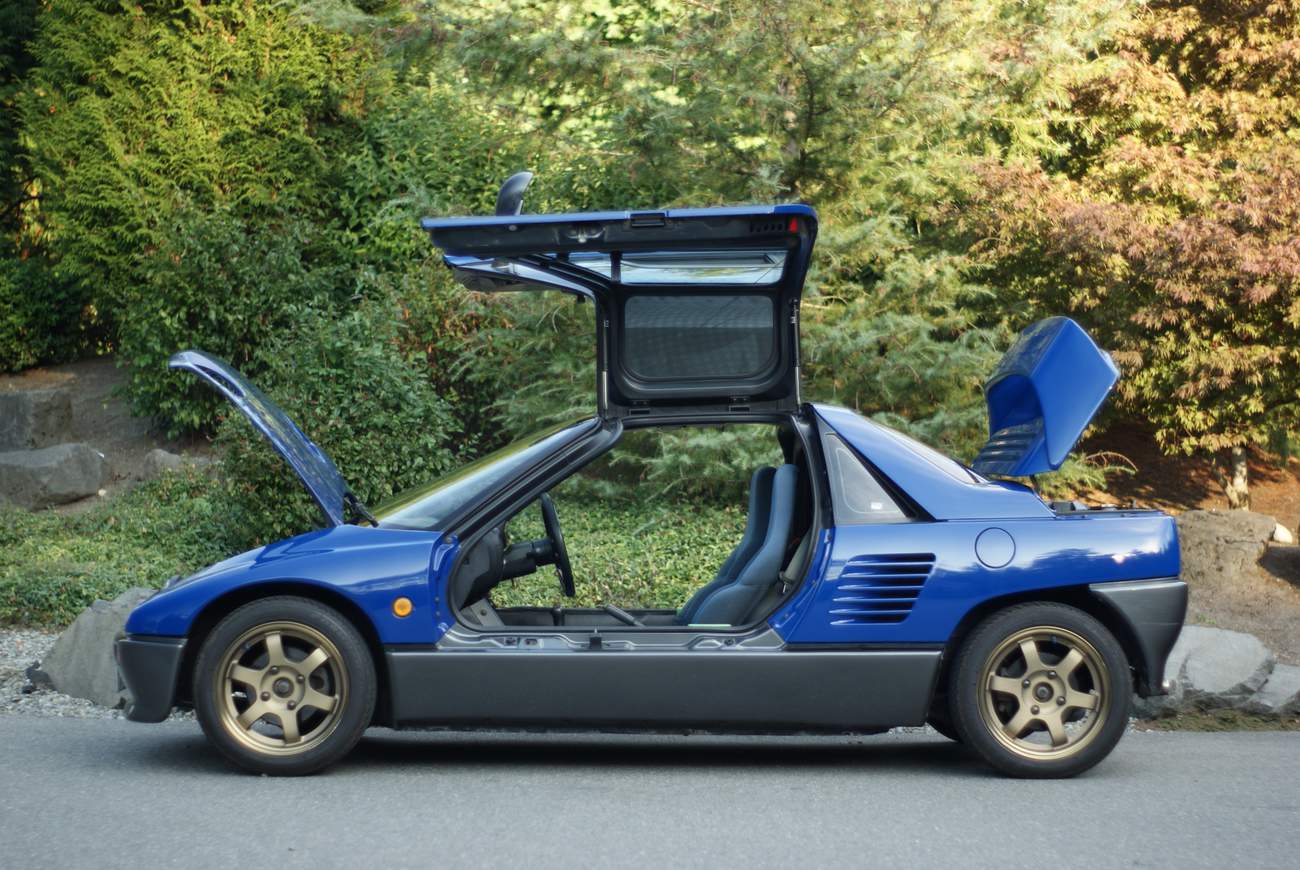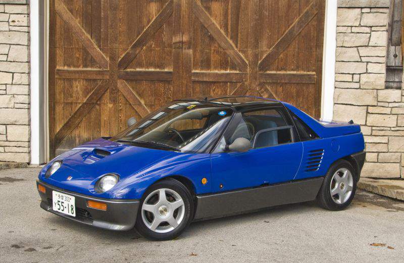 Na první auta si zákazníci počkali až do roku 1992, ale stálo to za to. Na nesmírně lehkou konstrukci obsahující ve velké míře hliník byla posazena karoserie z kompozitních materiálů a za sedadly posádky řádil půllitrový motor. Ten zde zůstal ještě od Suzuki. Celá tahle automobilová sranda vážila okolo 750kg. Vrcholem designu byly vzhůru výklopné dveře. Je možné být ještě víc cool? Automobil vstoupil na trh pod značkou Autozam, která se pod křídly Mazdy zabývala právě kei cars.