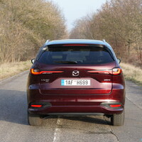 Vnější vzhled CX-80 se od menší sestry liší jen minimálně. Respektive až někde po B sloupek se dá říct, že jsou prakticky stejné. Teprve za ním vzniká ten 25 cm rozdíl, který tyto dva modely odlišuje nejvíce. Ohromné zadní dveře se širokým úhlem otevření ocení každá rodina. Oproti CX-60 se dozadu nastupuje přímo královsky. Překvapivě jiný je pak C sloupek a zadní prosklení, což je především kvůli cestujícím ve třetí řadě. Přesto se však nemohu ubránit myšlence, že CX-60 mi přišla o něco hezčí, respektive vyváženější. CX-80 je výrazně delší, ale šířka zůstala pro obě auta shodná. Z některých úhlů tak CX-80 vypadá trochu jako natažený jezevčík. Americká verze téhož modelu, CX-90, je o něco širší a rozkročenější a celkově vypadá mnohem vyváženěji. Ale na to si musíme nechat zajít chuť, ten je výhradně pro zámořské trhy. Celkově však nelze této velké Mazdě upřít šarm, který jen tak někde nenajdete. Klasická koncepce s podélně uloženým motorem a dlouhou přední kapotou totiž vždycky bude vypadat tak nějak důstojněji. Pochválit chci též barvu. Mazda je dobře známa pro svou sytě rudou metalízu, je to její signifikantní prvek. V případě CX-80 je ještě o chlup temnější a pronikavější, a na autě vypadá opravdu skvěle.
