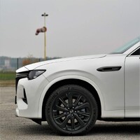 Zajímavý je pohled z boku. Zaujme velmi dlouhá kapota a přední náprava, která je hodně vysunutá dopředu. Mezi kolem a hranou předních dveří je neobvykle hodně místa, tak jak to mívají auta s podélně uloženým motorem a poháněnou primárně zadní nápravou. To je případ i platformy, na které CX-60 i CX-80 stojí.