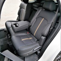 Limitem nejčastěji bývá místo na nohy – a to je zde právě díky rozvoru vyřešeno skvěle. Když se prostřední cestující posunou do nějaké stále komfortní úrovně (snažil jsem se takovou nastavit na vzdálenější sedačce na fotce č.33), dozadu se opravdu vejde dospělý člověk, který má nohy. Na cestu do Chorvatska to stále není, ale za trest rozhodně také ne. Navíc se zadní cestující na svá místa dostanou pohodlně – po stisknutí tlačítka na boku sedadel v prostřední řadě se elektricky uvolní opěradlo a jedním pohybem celou lavici odsunu. Trochu zamrzí, že po návratu zpět se opěradlo nearetuje v původní poloze, ale v té nejvzpřímenější. Škoda, už jen krůček chyběl k dokonalosti.