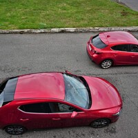 Srovnání motorizací je trochu nefér. Starší trojka je osazená nejsilnějším možným agregátem G165 (zkuste hádat s jakým asi výkonem), kdežto novinka má pod kapotou jen lehce přiškrcený G122. A revoluční Sky-X teprve teď přichází na trh, takže s ním ještě nemáme dostatek zkušeností. G165 je typická atmosféra, která potřebuje k rychlejšímu pohybu otáčky. Přestože je poměrně překvapivě silná i v těch středních, to nejlepší ze sebe dostává v pravém spektru otáčkoměru. G122 je ve vyšších otáčkách uměle uškrcená a je trochu cítit, že jí chybí elán, když ji chcete dotočit až do omezovače. Nutno podotknout, že je to však lepší než v dřívější verzi téhož. Dole a při rozjezdech si však pomáhá elektrickou magií. BP je tak zvaný Mild hybrid, který disponuje startér-generátorem, jenž je schopný chvilkově přidat asi 6 kW a nějaký ten elektrický newtonmetr. A kupodivu to funguje lépe, než bych čekal. Odezva na sešlápnutí plynového pedálu je naprosto příkladná a v turbodobě velmi osvěžující. Ze semaforů vystřelí dokonce rychleji, než by podle papírových předpokladů měla. Vzhledem k tomu, že se jedná o základní motor, asi netřeba chtít po něm něco víc. Na nějaké velké sportování to sice není, ale velmi svižnou jízdu rozhodně zvládne. Dech výrazněji dochází až nad dálničním limitem, kde už trochu cítíte, že se mu nechce. Ale na základ dobrý. Pořád to má čtyři válce, což začíná být trochu výjimka. A když už jsme u těch válců, Mazda3 jich při nízkém zatížení umí polovinu odpojit, aby se tak šetřilo drahocenné palivo. Asi to funguje, protože není problém udržet spotřebu v okolí šesti litrů při normálním cestování (při klidné jízdě to padá až někam k 5,5l), ale dvouválcový režim spolehlivě poznáte. Tohle by zasloužilo trochu vyladit.