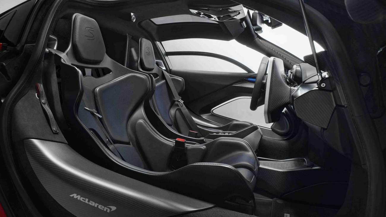 Senna bude nekompromisní. To už bylo jasné v prosinci, ale dáme si lehké opáčko, jak lehký a nepraktický bude silniční závoďák z Wokingu. Prostor pro osobní věci, který se nalézá pod kapotou ostatních modelů (P1, 720) v Sennovi nevyužijete – okupuje jej chladič. Jediné odkladiště předmětů se nalézá za skořepinovými sedadly. Vleze se tam helma, rukavice a závodní boty. To stačí. Z fotek je jasné, že nasoukat se do výrazně profilovaných sedadel skrze vysoké prahy nebude nic důstojného. Pokud se vám však úkon podaří, můžete se nechat hýčkat klimatizací, audiem i infotainmentem. Sedadla jsou pouze tak tenká, jak je nutné a každému kupci budou ulita na míru.Celkově i s kotvícími strukturami váží 8 kg – jsou to doposud nejlehčí sedadla použitá v McLarenu. Samotný skelet skořepiny váží pouhé 3,3 kg. Alcanatara je umístěna pouze tam, kde byl testováním zjištěn dotyk těla člověka a těla sedačky. Na základě strukturální analýzy pak bylo stanoveno, kde mohou konstruktéři ze subtilních skořepin ukrájet další gramy pryč.