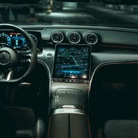 Můj největší problém s C43 však nastal vevnitř. Předchozí interiéry Mercedesu jsem měl vždy za to nejlepší, co můžete mít – podívejte se třeba na předchozí třídu S, to je naprosto perfektní rozložení interiéru, displeje neruší, jsou v zorném poli, všechno dobře. A i když céčko mělo až do aktuální generace onen tablet neelegantně vystrčený do interiéru, pořád byl aspoň v zorném poli. Tady se s tím prostě nedokážu moc skamarádit, MBUX je sice skvělý systém, který není těžké po chvilce soužití pochopit a naučit se, co kde je (i když je narvaný funkcemi), ale příliš moc nutí řidiče sjíždět očima dolů od cesty a ruší od řízení. Příjemně překvapený jsem byl z tlačítkodisplejů na volantu – naklikáte si, co potřebujete jako rychlou volbu, a bočním tlačítkem zmáčknete. Zvykl jsem si na to velmi rychle a ač jsem to z obrázků vnímal jako takovou kýčovitou záležitost, je to velmi užitečná věc.