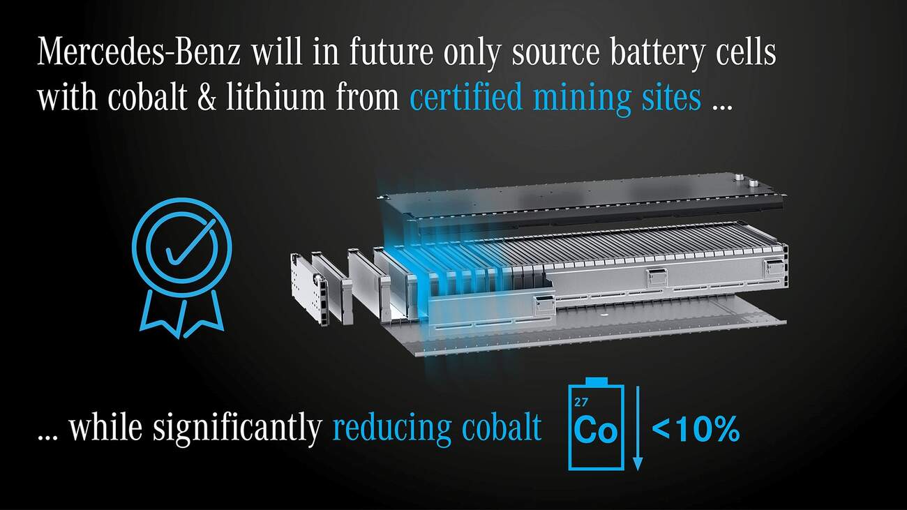 Společnost Mercedes-Benz AG se ujímá průkopnické rolei v oblastispolečensky přijatelné a ekologicky šetrné těžby kobaltu a lithia. Společnost trvá na zavedení přísných standardů pro udržitelnost, kam se řadí všeobecně uznávaná Norma pro zodpovědnou těžbu, která je součástí tzv. Iniciativy pro zodpovědnou těžbu (IRMA). Společnosti, které budou chtít uzavřít kontrakt s koncernem Daimler, se budou muset zavázat, že v rámci vlastního dodavatelského řetězce budou získávat suroviny výhradně od těch společností, které jsou auditovány v souladu se standardy IRMA.
