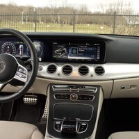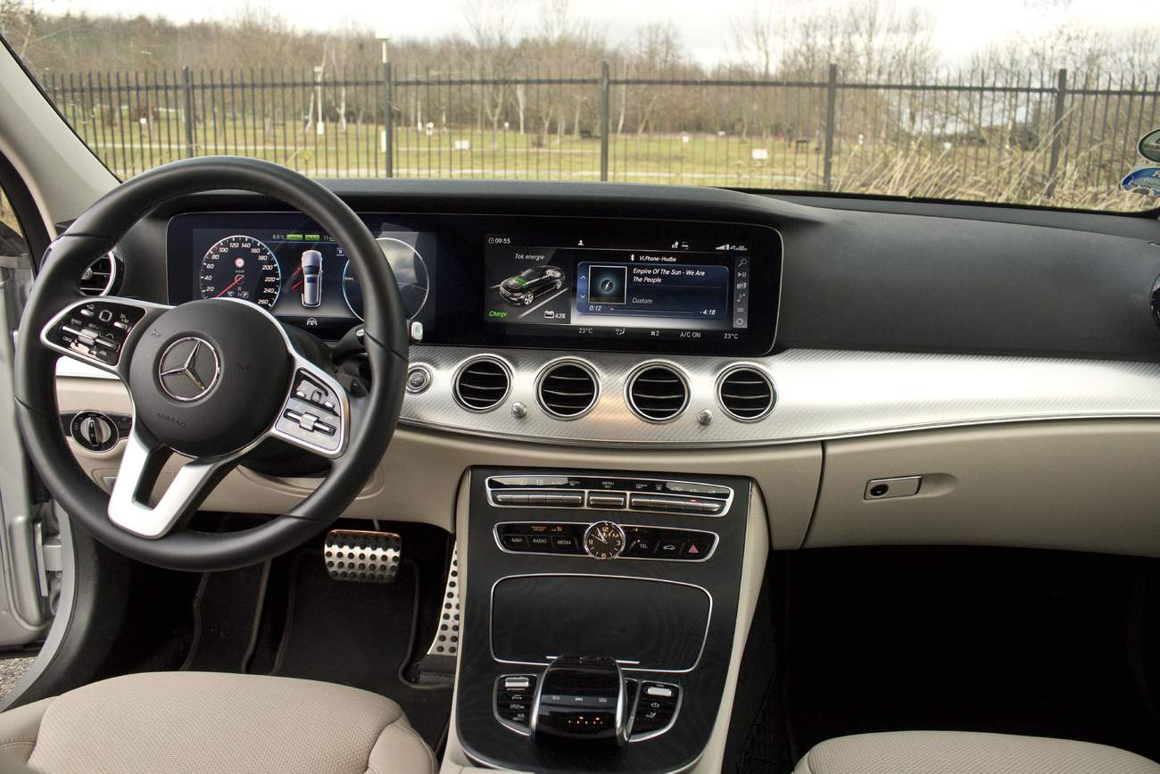 Když potom odhlédneme od “alternativního” pohonu, dostanete auto, které se v ničem neliší od standardní E-klasse. To znamená, že na něm budete horko těžko hledat kompromisy. Podvozek je ladný a sebejistý zároveň. Automat řadí, jak by nebyl. Kabina s dokonalými sedačkami a prvotřídními materiály (černé dřevo s drsnou přirozenou strukturou si zaslouží samostatnou pochvalu) poskytuje příjemné místo k životu a okamžitě po usednutí cítíte, jak vám klesá krevní tlak. Displeje se skvělým rozlišením, grafikou i barvami můžou mnozí konkurenti jen tiše závidět a optické trackpady na volantu prostě miluju. Pak jsou tu samozřejmě jízdní asistenty, kterým v podání Mercedesu není co vytknout. Adaptivní tempomat reagující na dopravní značky, lane assist, dokonce samostatná změna jízdního pruhu, to všechno s nenásilným až něžným projevem, který řidiče nebuzeruje, ale zdvořile upozorňuje. Takhle se má chovat prémiový vůz.