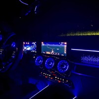 Na předposlední den testování jsem se tak rozhodl, že vytáhnu těžký kalibr. Počkám si, až se setmí, a mercedesu se budu smát za jeho legendární krajně nevkusné a pouťové ambientní osvětlení. Tady uvedu, že jsem se zprvu až nepřístojně zaradoval, protože se urodilo. Ve výchozím nastavení žhne půlka palubní desky modrou jako v klubu nevalné pověsti a variantu Color Mix ani nebudu komentovat.