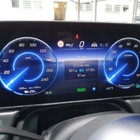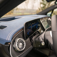 Na přístrojové desce také vidíme nejnovější trendy. Mercedes, který jako jeden z prvních prakticky založil módu dvou „spojených“ displejů na přístrojové desce, už tento styl zas opustil a vrátil se k tradičnímu rozložení jednoho displeje pod volantem a druhého ve středu. Obzvláště ten před řidičem hodně potěší, protože se zdá, že některé automobilky ho snad považují za nadbytečný. Má víc typů zobrazení a každé z nich je docela pěkné a dává smysl (na rozdíl třeba od nejmenovaných konkurentů z Mnichova). Středový displej si ve své spodní části drží ovládání klimatizace a rychlý přístup do menu.