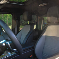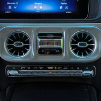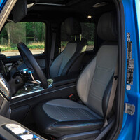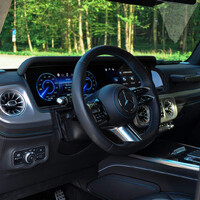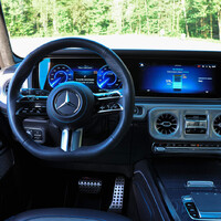 Stejně jako zbytek interiéru, který je opravdu velmi kvalitně zpracovaný. Tak moc, že si nevzpomínám snad na žádné auto, které by se třídě G byť jen přiblížilo. Ani vrcholné limuzíny nejsou tak bytelně zpracované! Na co sáhnu, to drží, nic nevrže, neprohýbá se, každý zvolený materiál je snad té nejvyšší možné kvality a povětšinou zde najdeme kůži nebo hliník. Opravdu, hledal jsem nějaký přešlap, který bych mohl aspoň trochu vytknout a na nic jsem nepřišel. Kromě dotykového volantu, na kterém si při přesunu rukou občas omylem zvolím něco jiného.